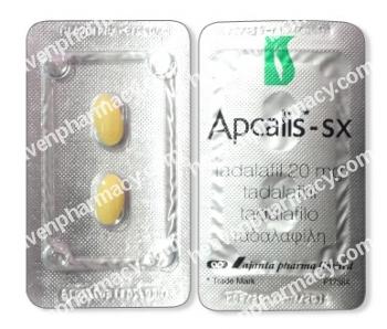Apcalis is an effective, reversible, selective inhibitor of phosphodiesterase type 5 (PDE 5) specific to cyclic guanosine monophosphate (cGMP). When sexual stimulation causes local release of nitric oxide, inhibition of PDE 5 by Cialis leads to increase of cGMP levels in the cavernous body of penis. It results in relaxation of arterial smooth muscles and blood flow to the tissues of the penis that causes erections. Cialis has no effect when sexual stimulation is absent. Apcalis improves erection and lets achieve a successful sexual intercourse. The drug acts during 36 hours. If sexual arousal is present the effect appears even after 16 minutes after the medication was taken.